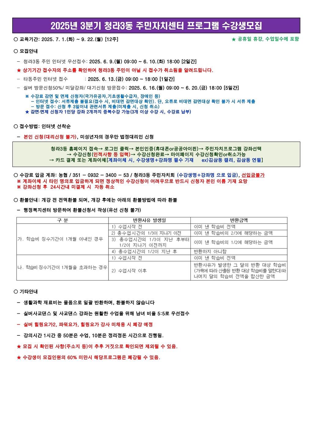 ★★ 청라3동 주민 인터넷 우선접수기간(6/9(월)~6/10(화))에 타 동 주민접수 시 접수가