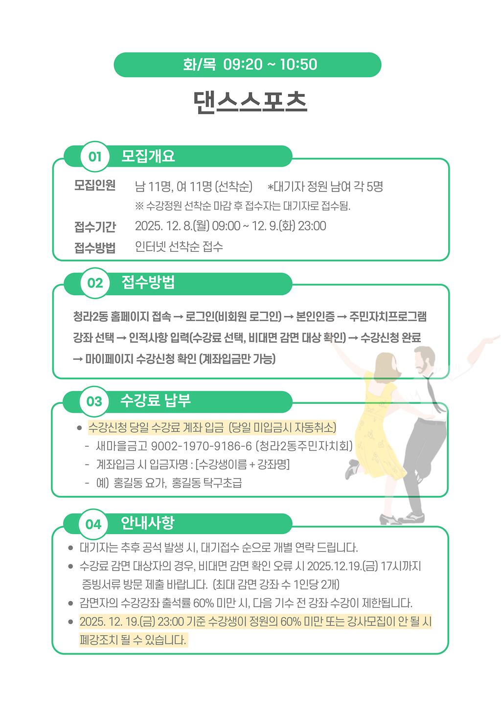 ★ 본 화면은 댄스스포츠 <남자> 수강신청 페이지 입니다.