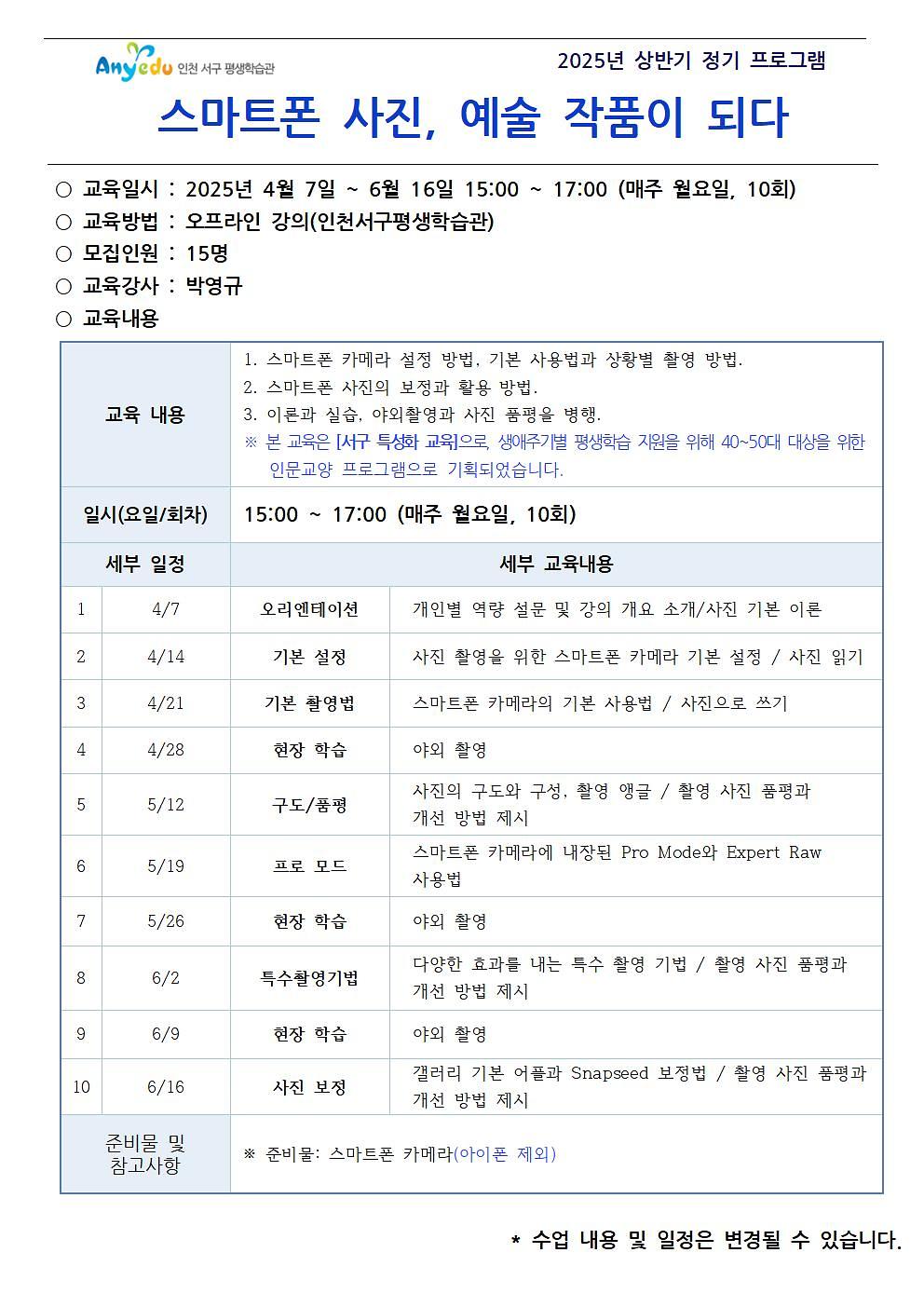 *개인 준비: 스마트폰 카메라(아이폰 제외)