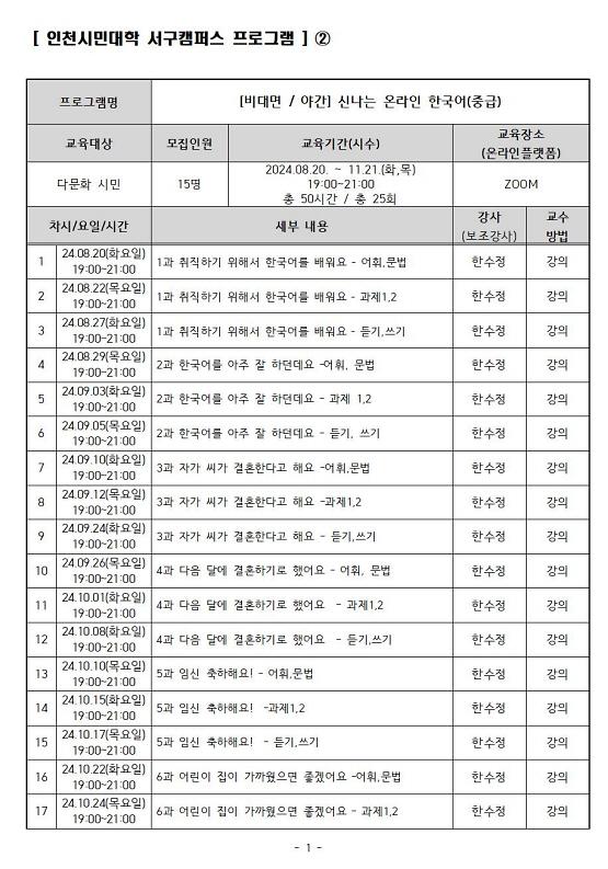 다문화 주민 대상, [비대면 / 야간] 신나는 온라인 한국어(중급)