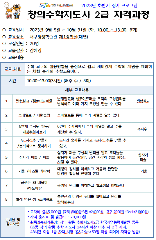 교재비 및 교구 45,000원(자격응시료 및 발급비 별도)