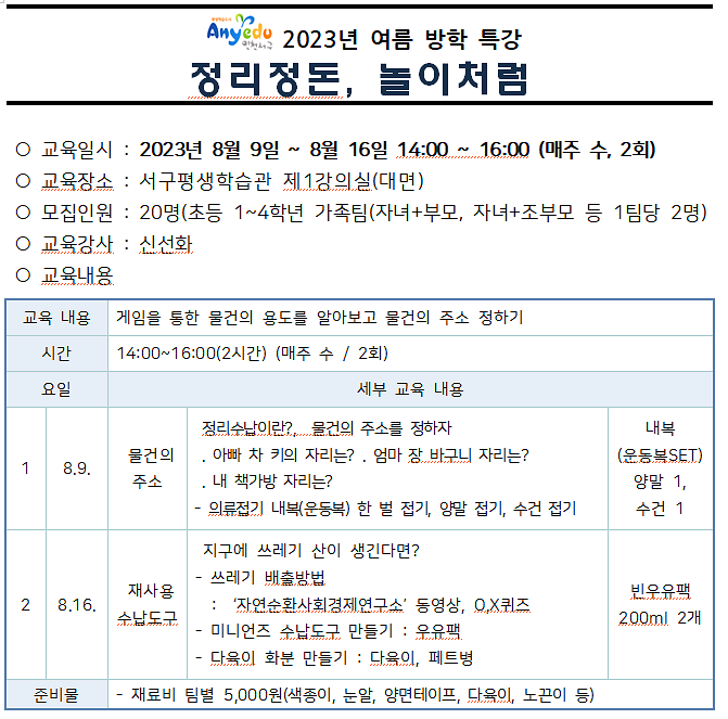 -> 재료비 입금계좌는 수강신청 완료 후 안내 예정