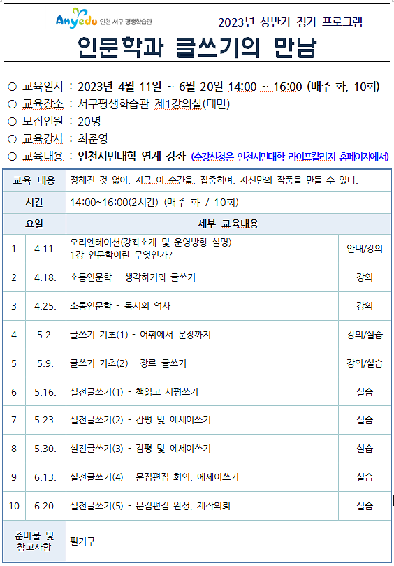 인천시민대학 서구캠퍼스 강좌입니다.