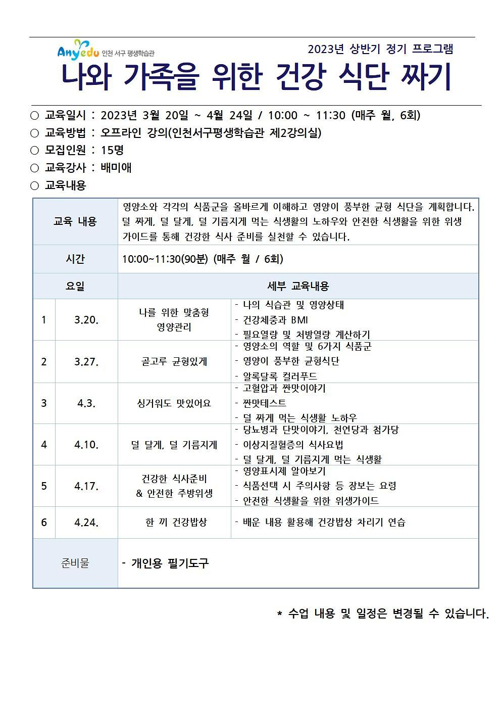 나와 가족을 위한 건강 식단짜기