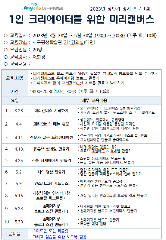 -스마트폰 또는 태블릿, 그리고 실습을 위한 노트북 필참