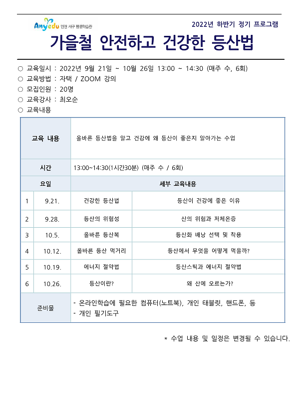 가을철 안전하고 건강한 등산법