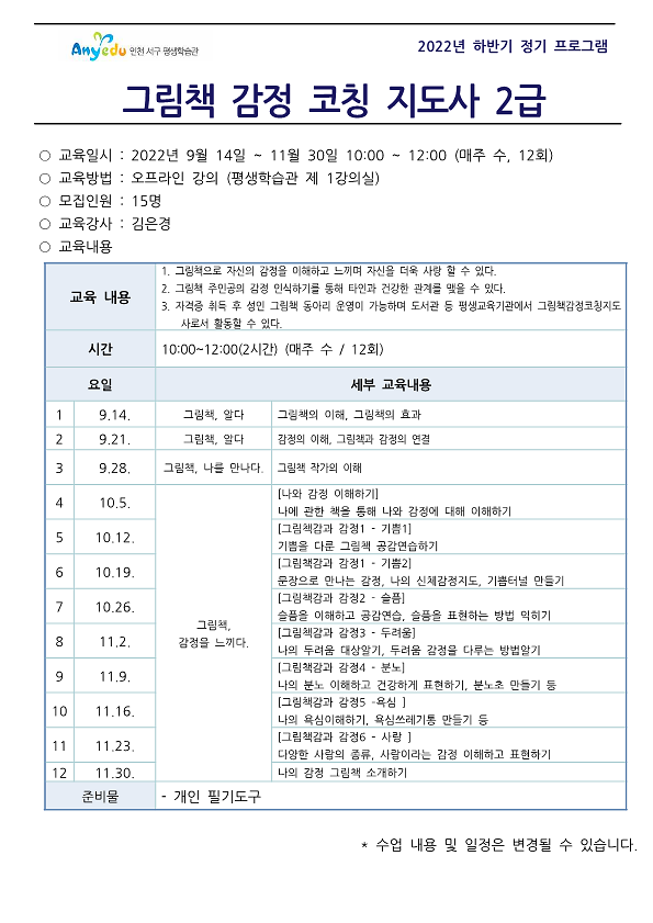 *그림책 감정코칭 지도사 2급(민간자격증) 발급비용 83,000원(자격증 필요시 학습자 부담으로 취득 가능)