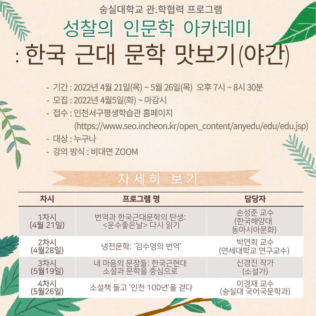 성찰의 인문학 아카데미 : 한국근대문학 맛보기