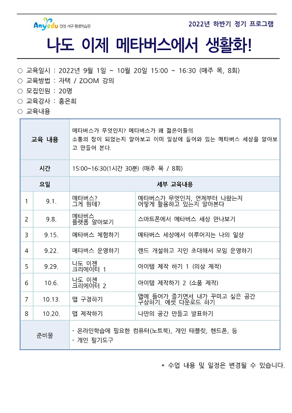 배움을 통해 성장하고 나눔을 실천하는 인천 서구 평생학습관에 오신것을 환영합니다.