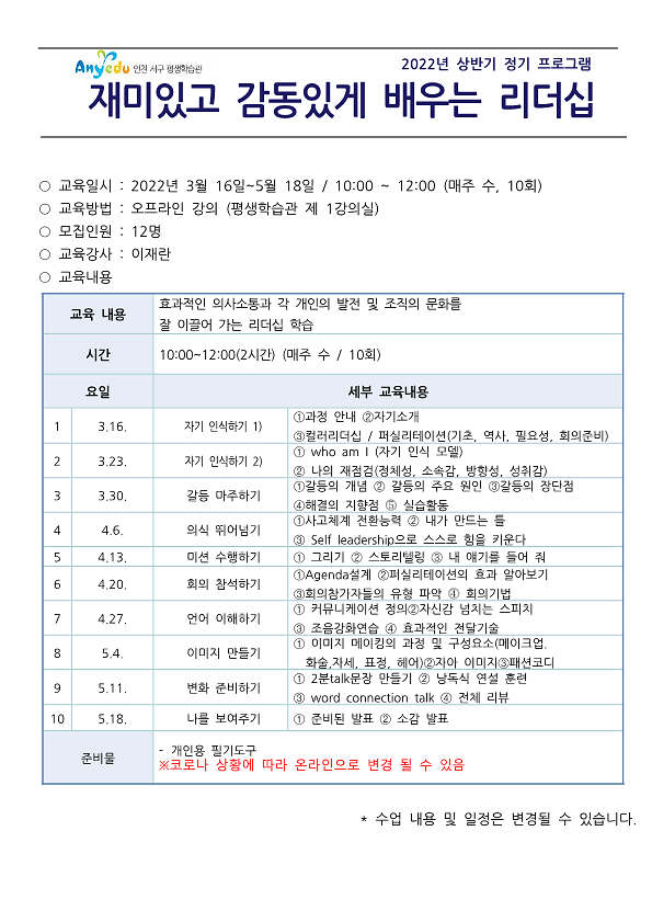 *수업 변경안내*