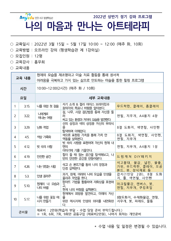 3/15 ---------> 3/22 (날짜만 병경되고 일정은 동일하게 한 주 밀려 진행됩니다.)