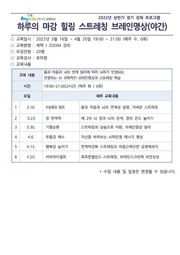 하루의 마감 힐링 스트레칭 브레인 명상