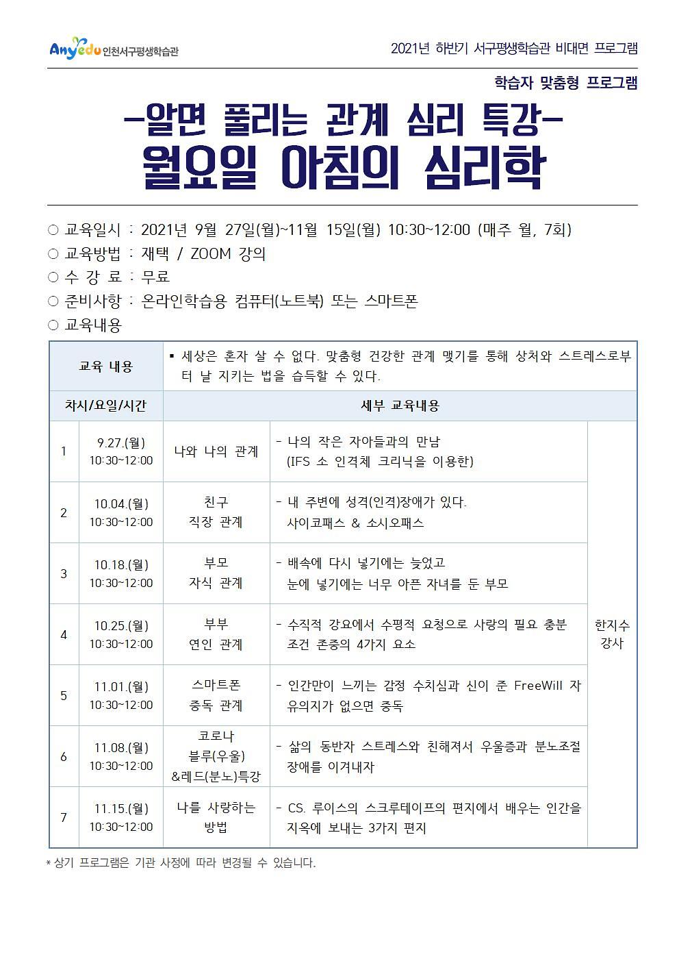 배움을 통해 성장하고 나눔을 실천하는 인천 서구 평생학습관에 오신것을 환영합니다.