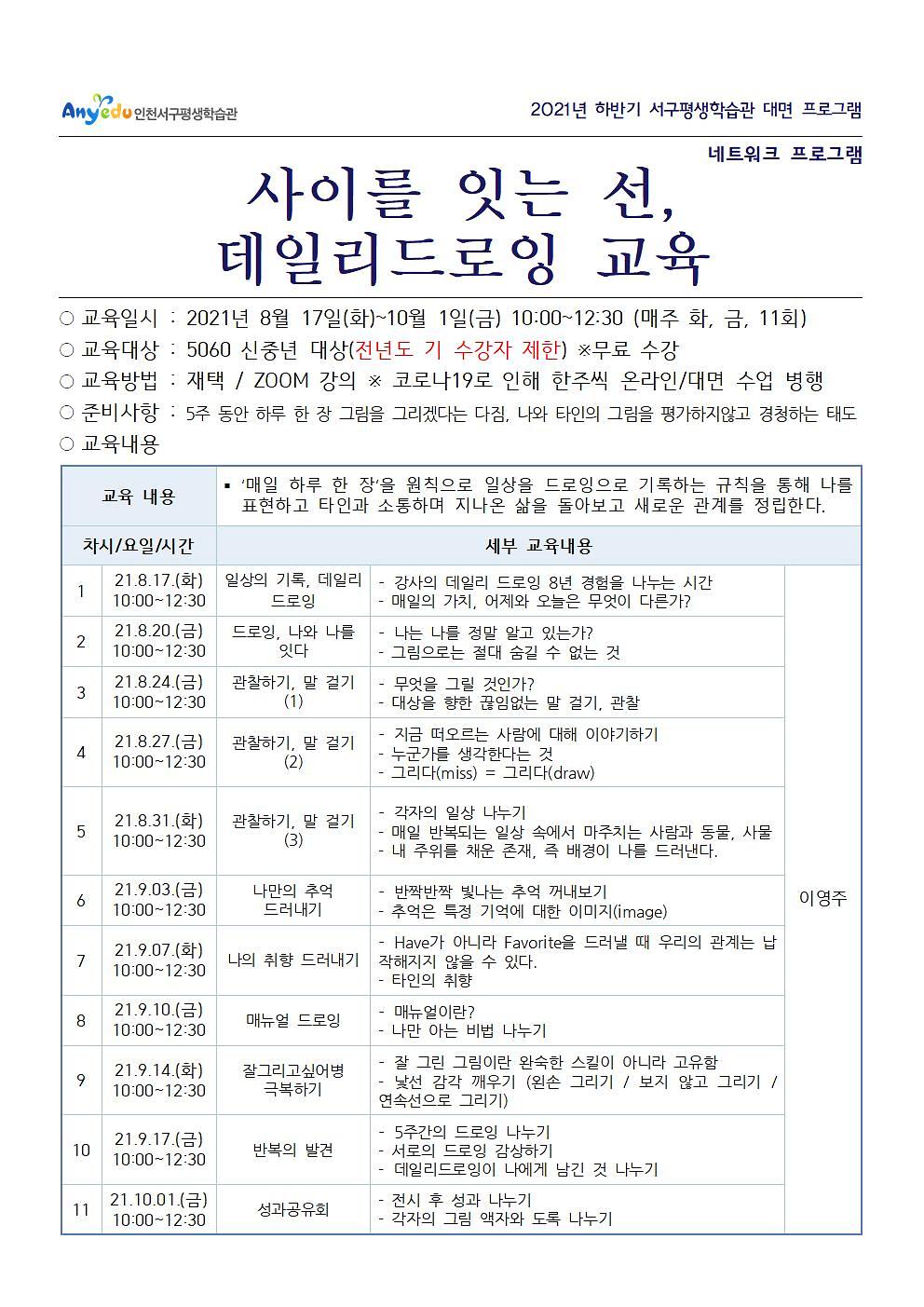 배움을 통해 성장하고 나눔을 실천하는 인천 서구 평생학습관에 오신것을 환영합니다.