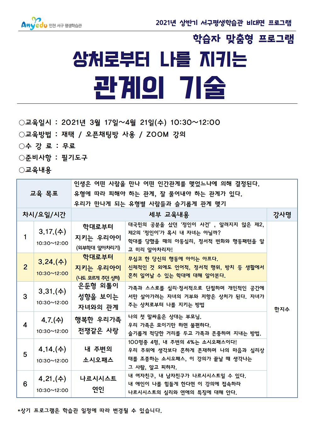 배움을 통해 성장하고 나눔을 실천하는 인천 서구 평생학습관에 오신것을 환영합니다.