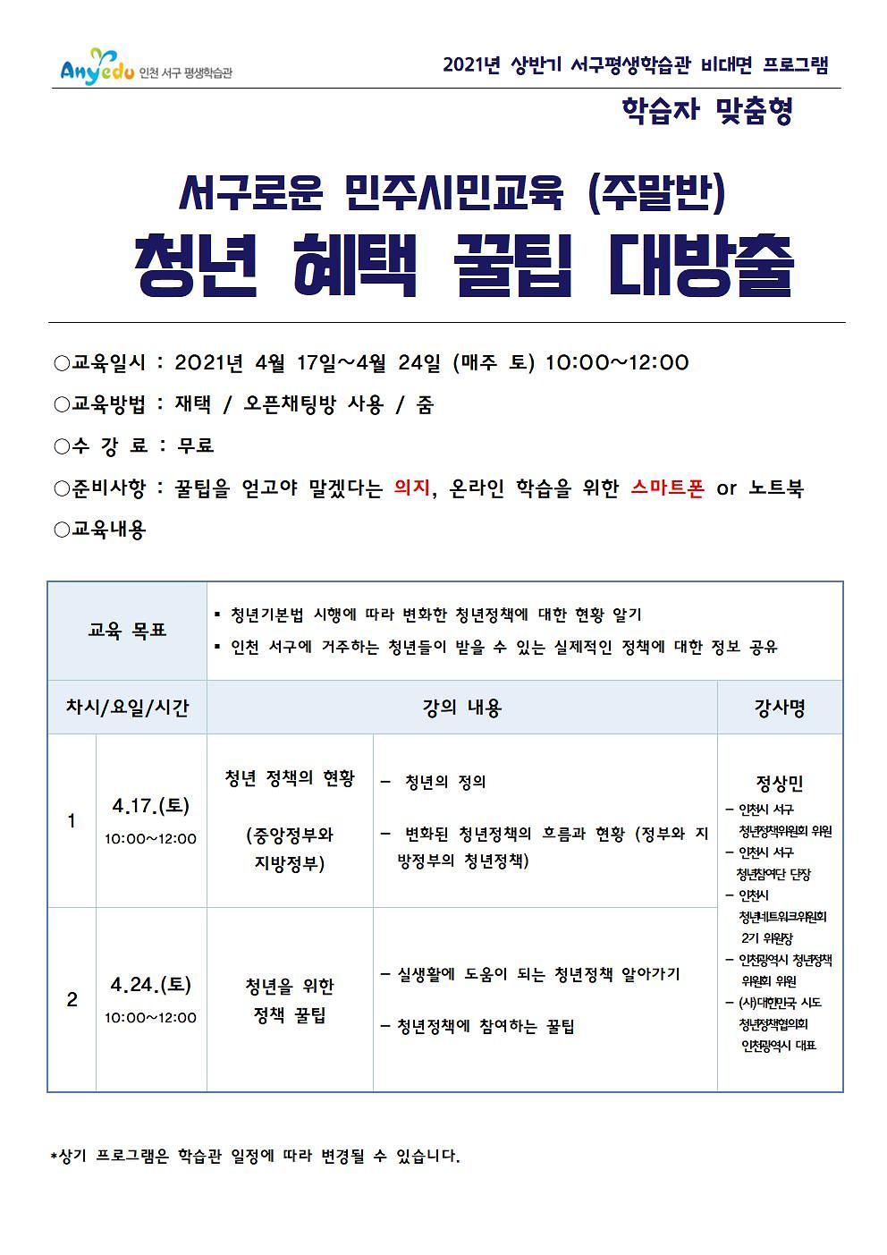 [민주시민교육] 서구로운 청년혜택 꿀팁 대방출 (토욜오전)