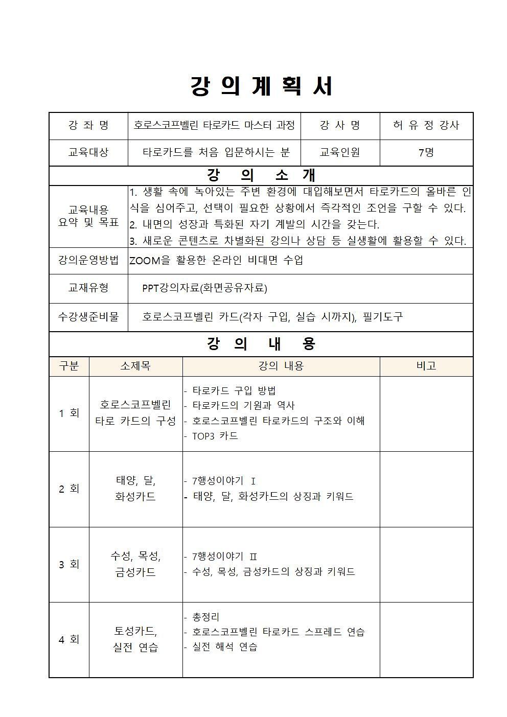 * 타로카드는 실습수업 전까지 개별 구매하시면 됩니다.