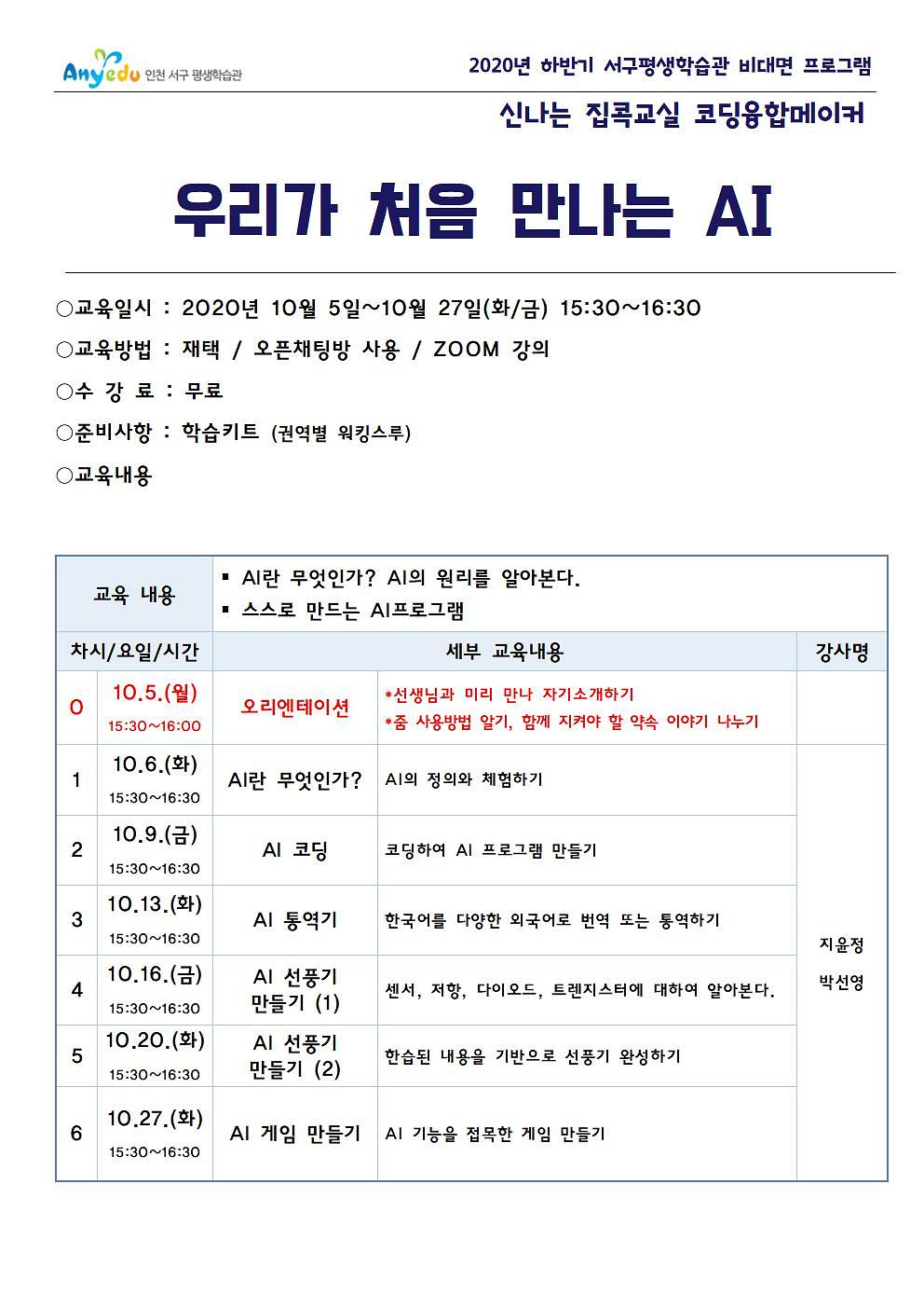 [신나는 집콕교실 코딩융합 메이커] 우리가 처음 만나는 AI(인공지능) (초5~초6)