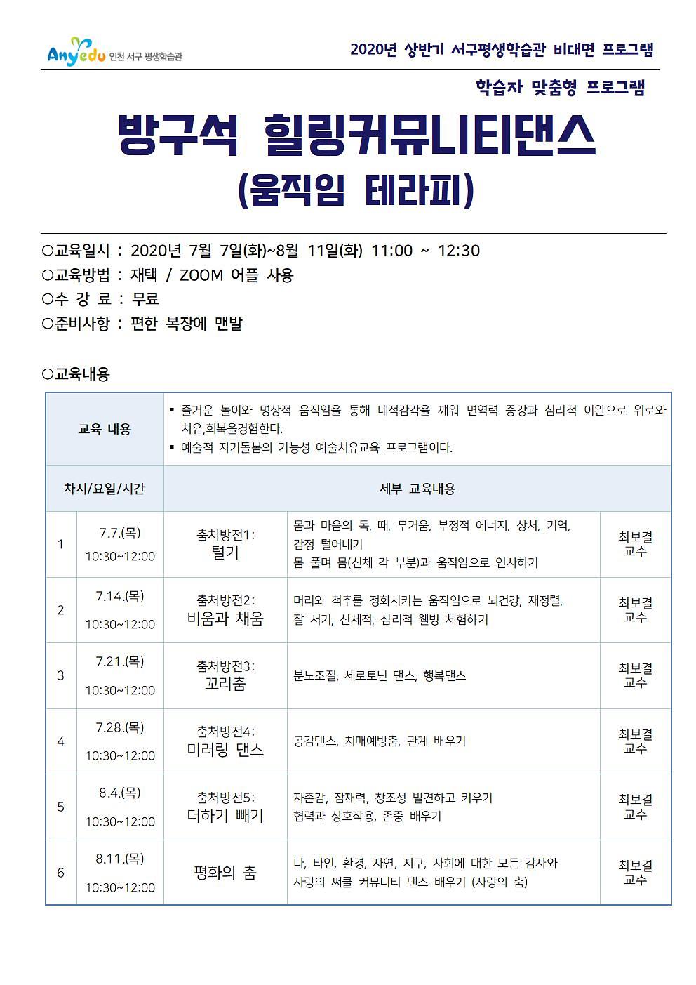 방구석 힐링커뮤니티댄스(움직임 테라피)