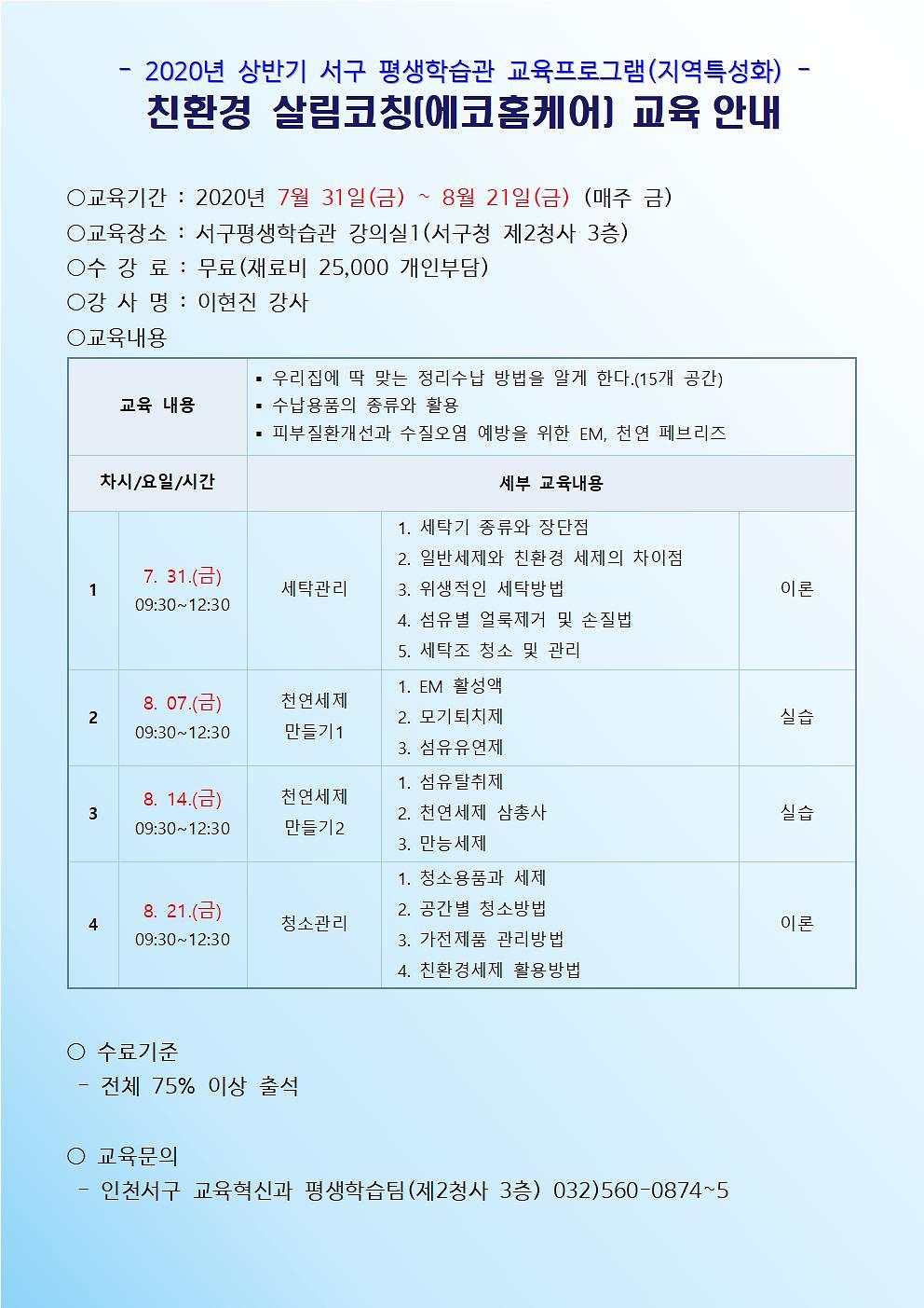 ※코로나19, 교육프로그램 개강이 연기되거나 취소될 수 있습니다.