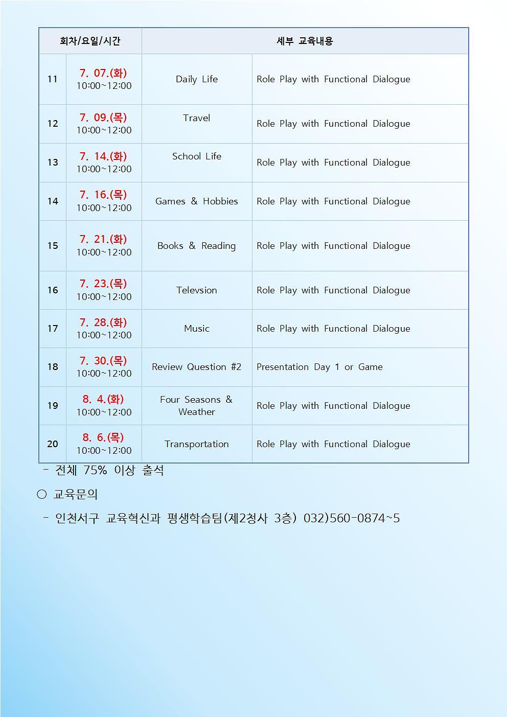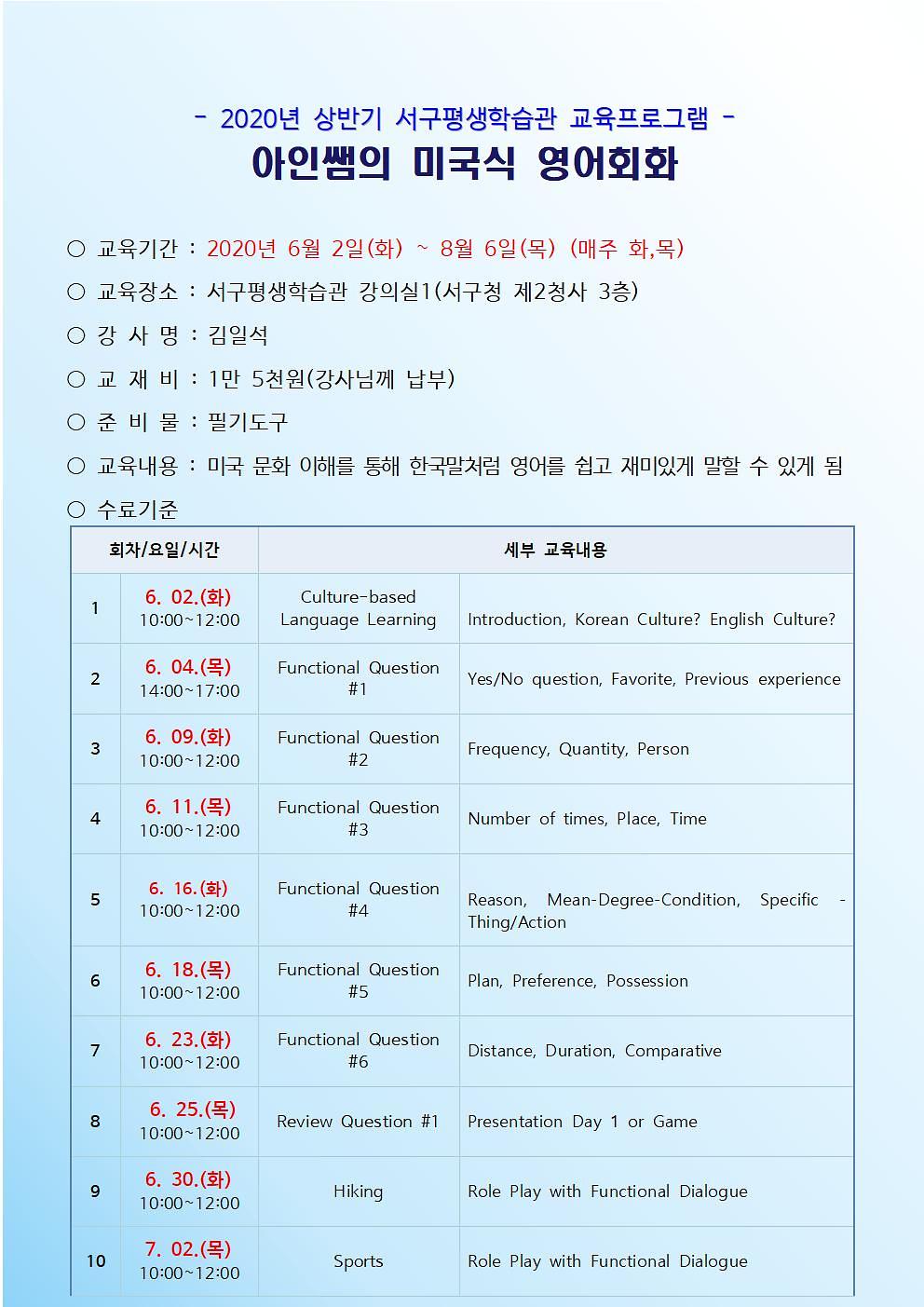 ※코로나19 바이러스 확산시, 교육프로그램 개강이 연기되거나 취소될 수 있습니다.