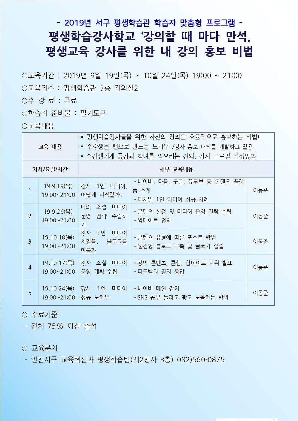 평생학습 강사학교 '강의할 때 마다 만석, 평생교육강사를 위한 내강의 홍보 비법'