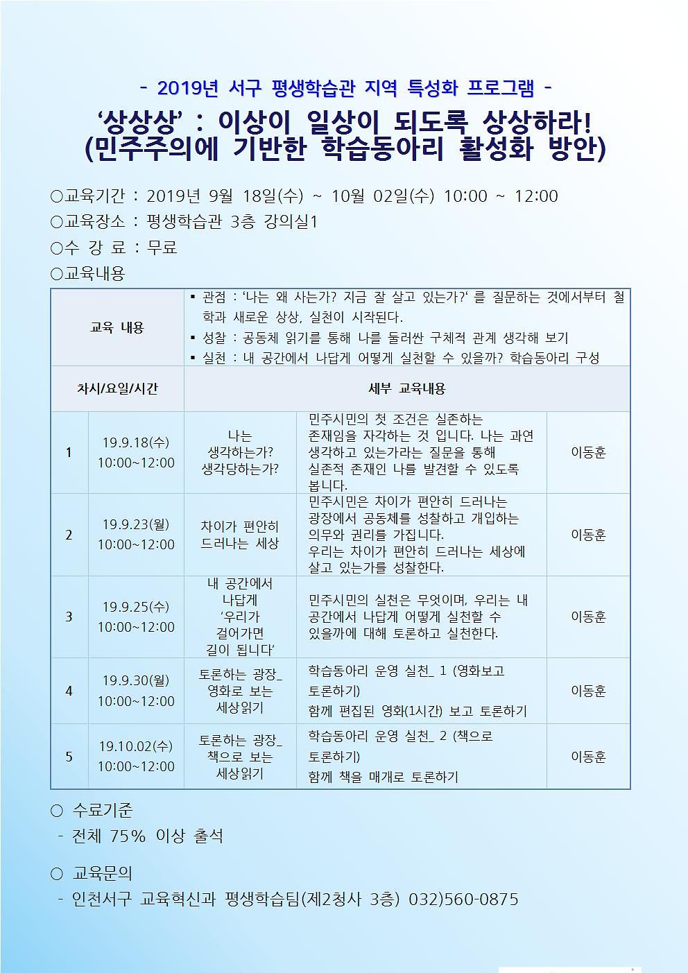 배움을 통해 성장하고 나눔을 실천하는 인천 서구 평생학습관에 오신것을 환영합니다.