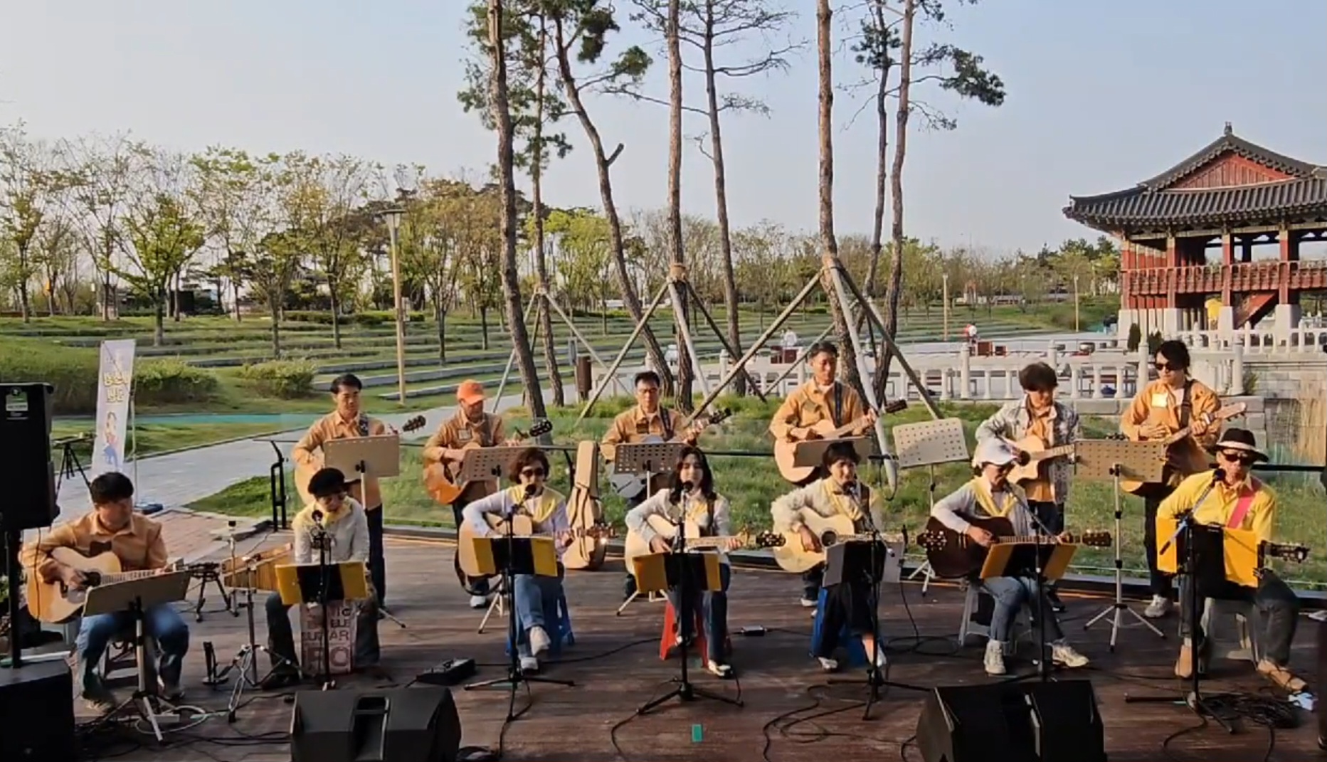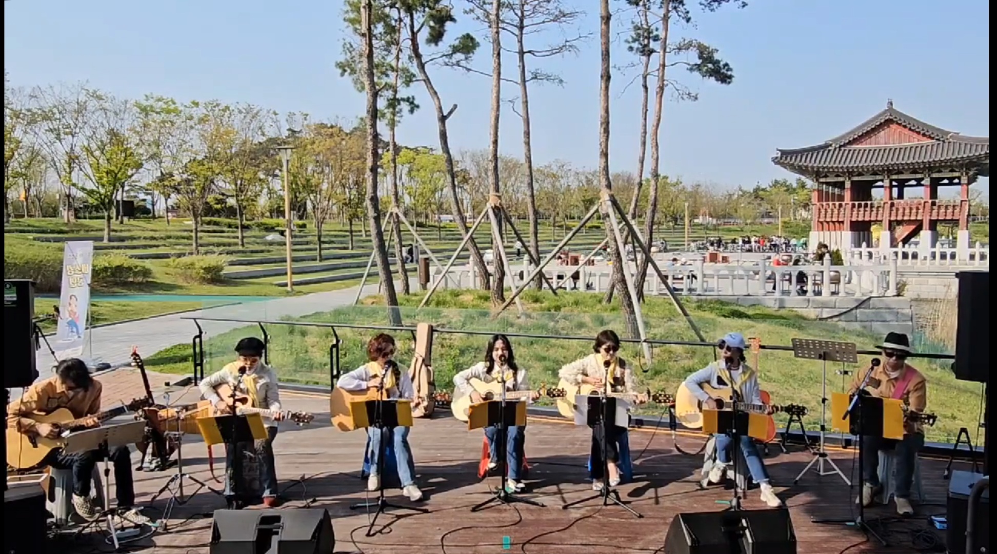저희 청라국제도시 통기타동호회에서 4월 26일 토요일에 청라호수공원 다이브 버스킹존에서 봄버스킹 공연을 하였습니다. 지역 주민들과 문화로 소통하는 좋은 기회가 되었습니다.