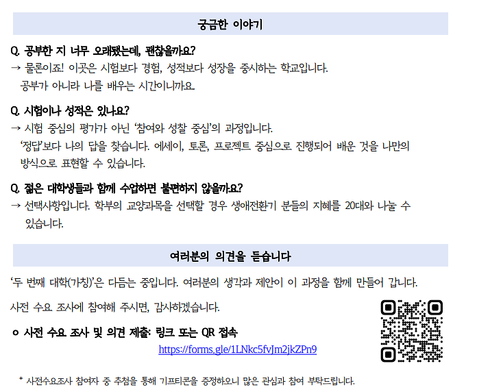 인천대학교 평생교육원[두번째 대학] 수요조사 안내