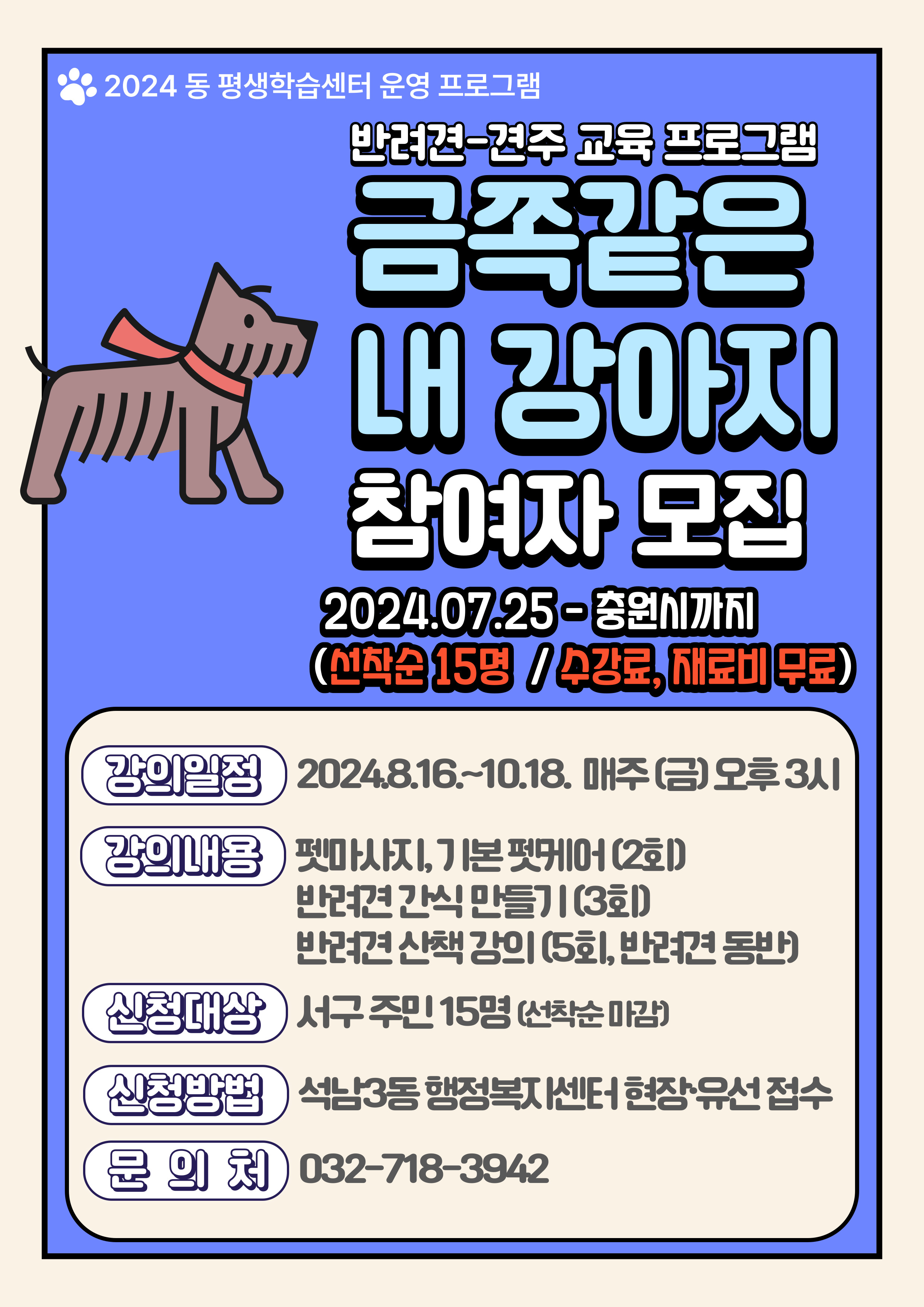2024 동 평생학습센터 운영 프로그램 안내 (석남3동_반려견-견주 프로그램)