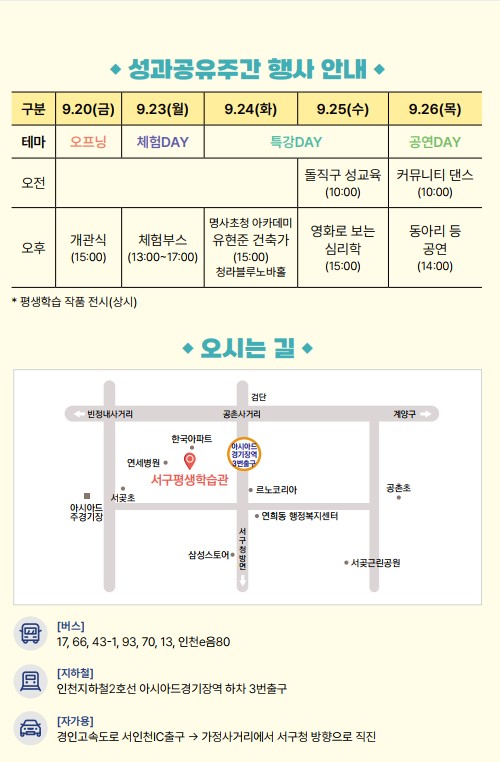 배움을 통해 성장하고 나눔을 실천하는 인천 서구 평생학습관에 오신것을 환영합니다.