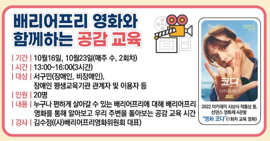 평생학습관-배리어프리 영화와 함께하는 공감 교육 내용 | 인천광역시 서구 평생학습관>교육신청>평생학습관 (seo.incheon.kr)