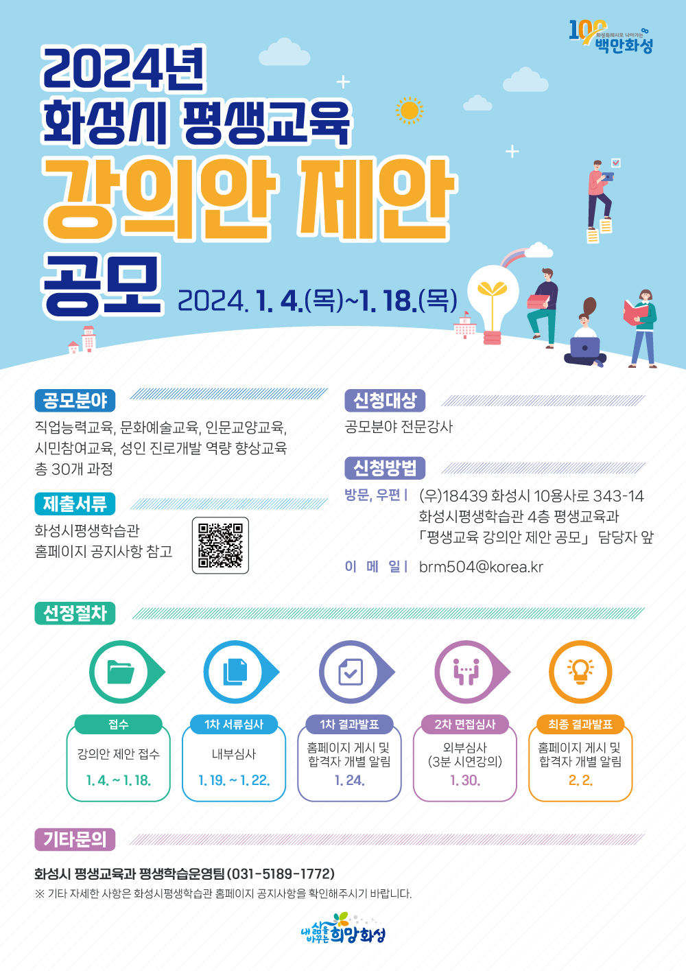 「2024년 화성시 평생교육 강의안 제안 공모」 안내 및 홍보 협조 요청"