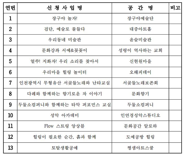2025년 문화충전소 운영 현황을 알려드리오니 참고 바랍니다.