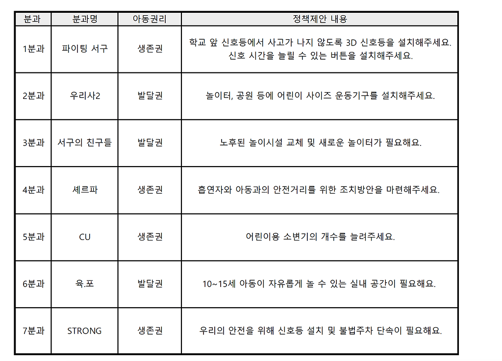 저번 시간에 분과별 정책 제안 주제를 선정하였습니다.