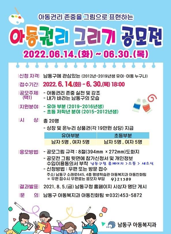 - 서식 다운로드 : 남동구 홈페이지> 소통> 새소식 > 2022년 남동구 아동권리 그리기 공모전 공고