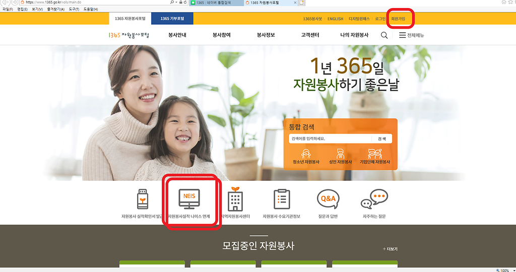 간혹 위원분들 중 '1365' 자원봉사포털에 회원가입이 되지 않아 실적이 반영되지 않는 일이 발생할 수 있습니다.
