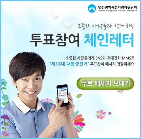 이와 관련하여 귀 기관의 많은 인천시민이 「투표참여 체인레터 운동」에 동참하여 인천지역의 투표율을 올릴 수 있도록 적극 협조하여 주시기 바랍니다.
