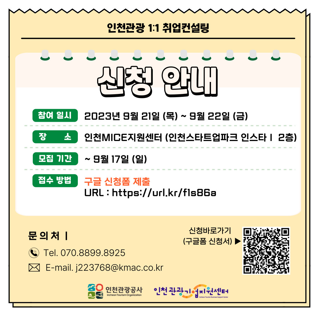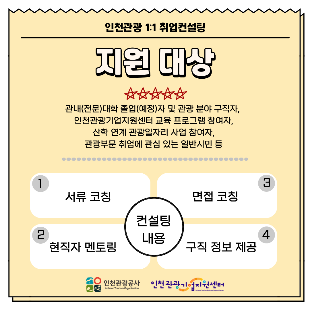 📢 인천관광 1:1 취업컨설팅 무료 지원 [현장/온라인] - 관광분야