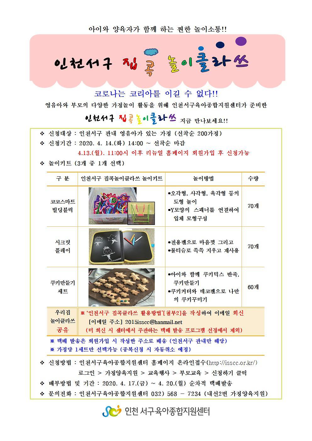 서구육아종합지원센터, 집콕놀이클라쓰 신청 안내