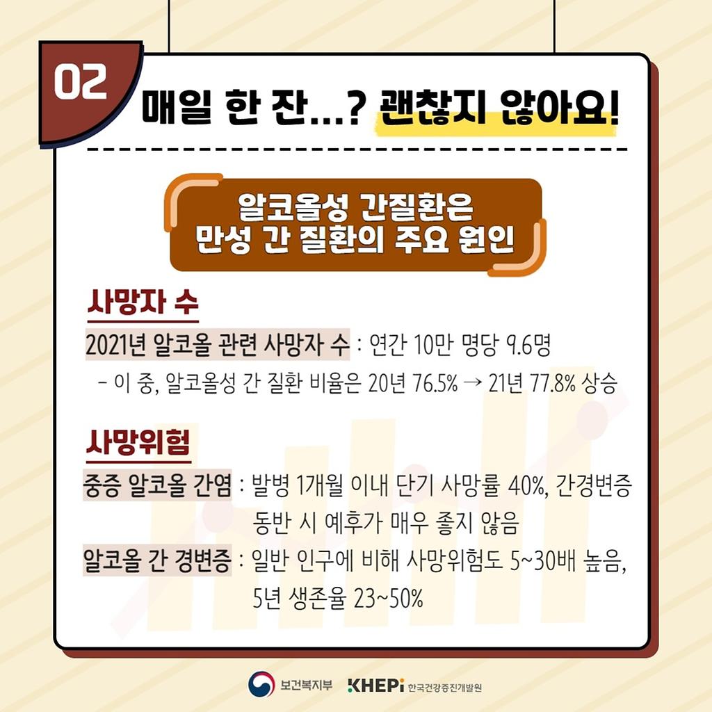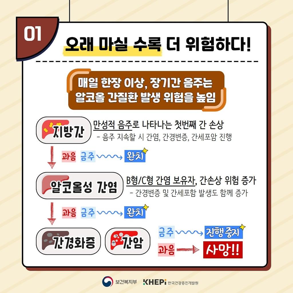 *출처 : 음주와 간 질환 : 모두가 알지만, 잘 알진 못하는 사실 카드뉴스 < 발간물 < 자료 - 절주온 (khepi.or.kr)