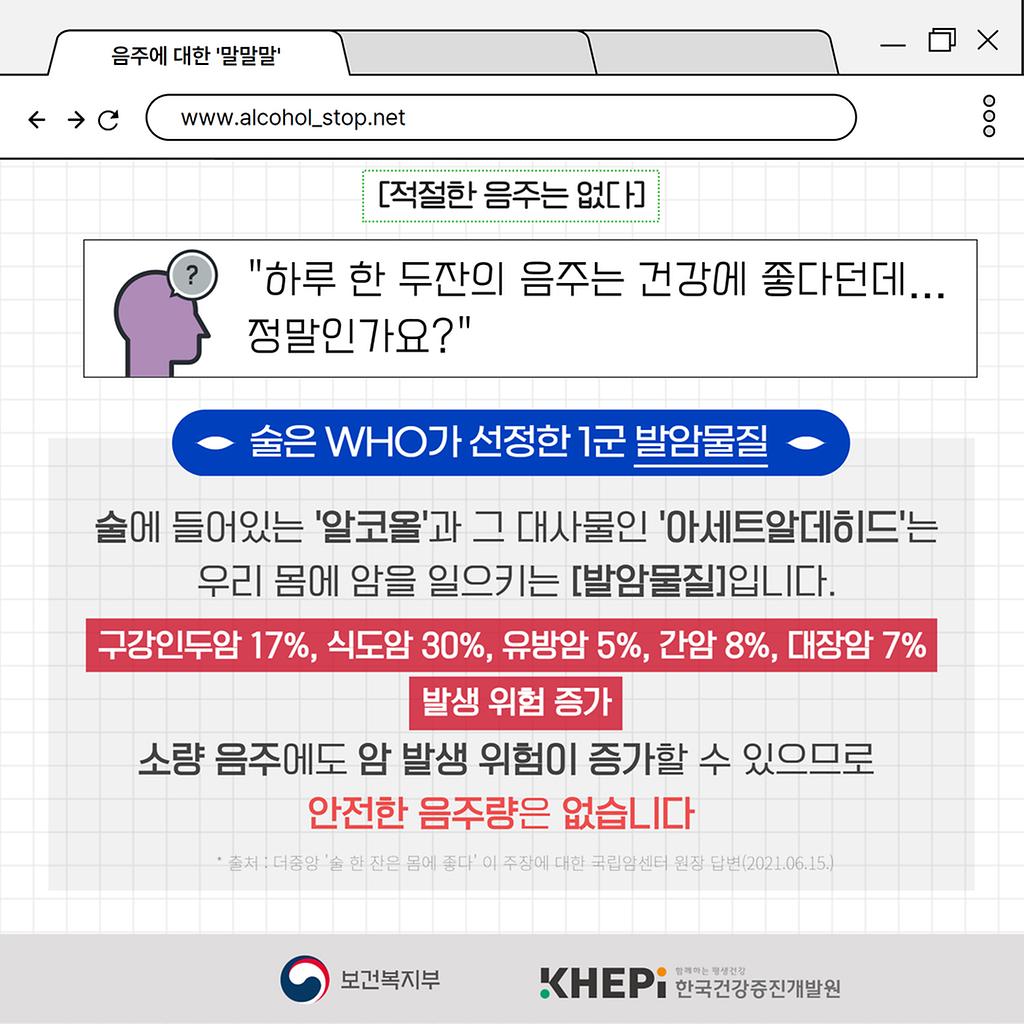 출처 : [음주에 대한 말.말.말.] 적절한 음주는 없습니다 < 발간물 < 자료 - 절주온 (khepi.or.kr)