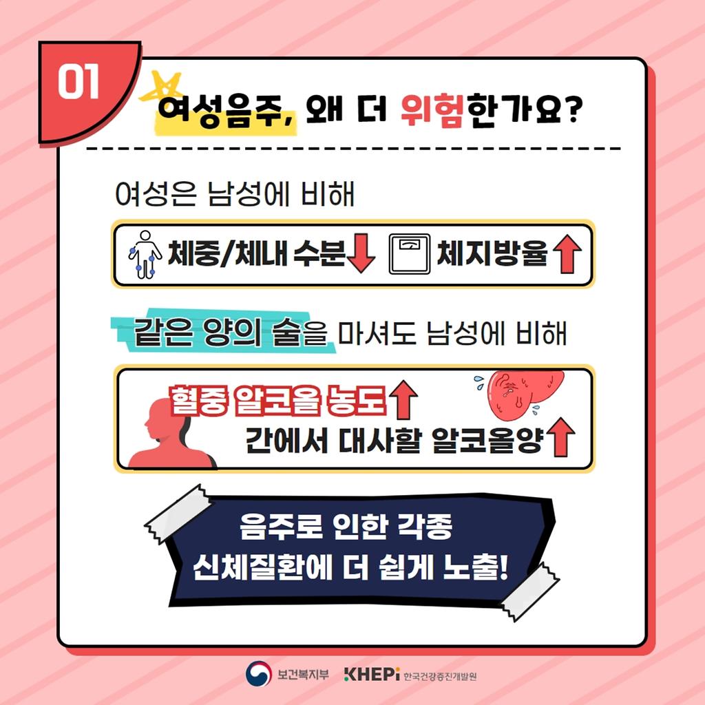 *출처: 여성음주: 여성들이 알아야 할 술의 위험성 카드뉴스 < 발간물 < 자료 - 절주온 (khepi.or.kr)