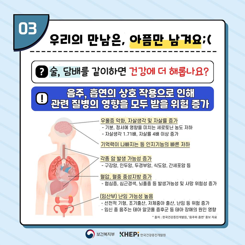 *출처: 음주와 흡연 : 술과 담배, 잘못된 만남의 진실 < 발간물 < 자료 - 절주온 (khepi.or.kr)