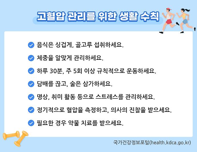 규칙적으로 혈압을 측정하고 정기적인 검진을 받아 혈압 상태를 지속해서 모니터링 하며 필요한 조치를 취하는 것이 중요합니다.