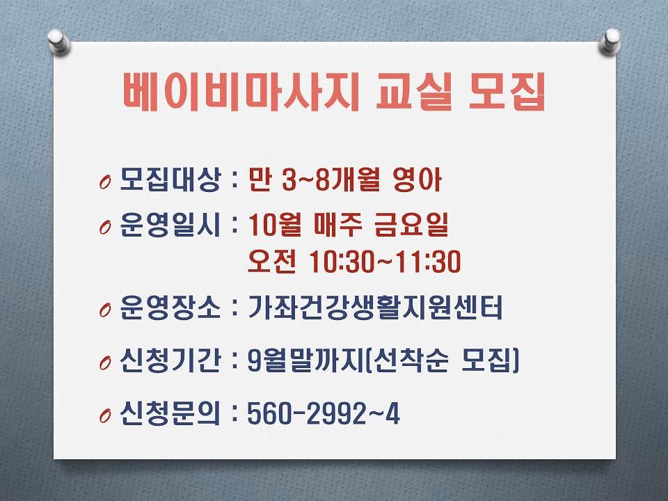 영아성장발달에 좋은 베이비마사지 교실을 운영하고자 하오니
