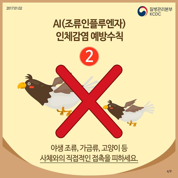 ❍ 가금류, 야생조류나 동물 사체는 접촉하지 마십시오.