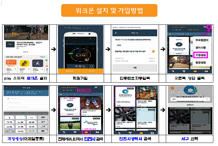 인천시와 서구보건소에서는 걷기 어플리케이션 워크온(walkON) 을 도입하여 걷기 생활화 운동을 시작합니다~