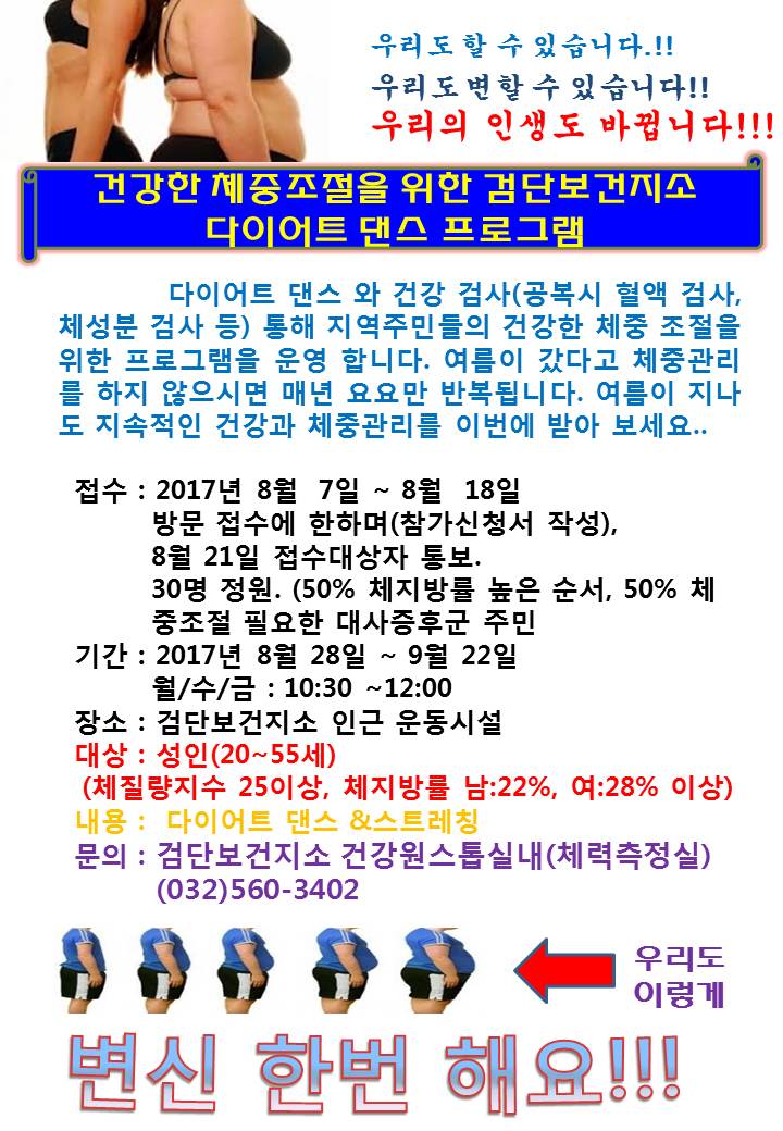 다어이트 댄스와 함게 하는 검단보건지소 건강체중123 프로그램 운영 안내