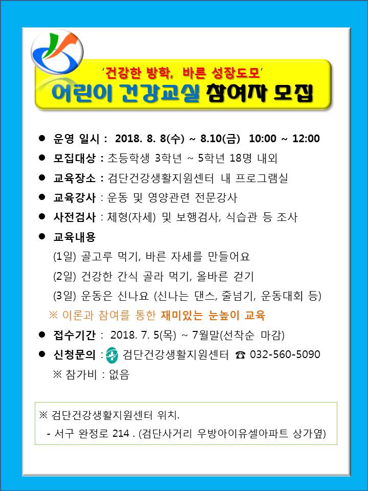 검단건강생활지원센터 [ 어린이 건강교실 ] 참여자 모집